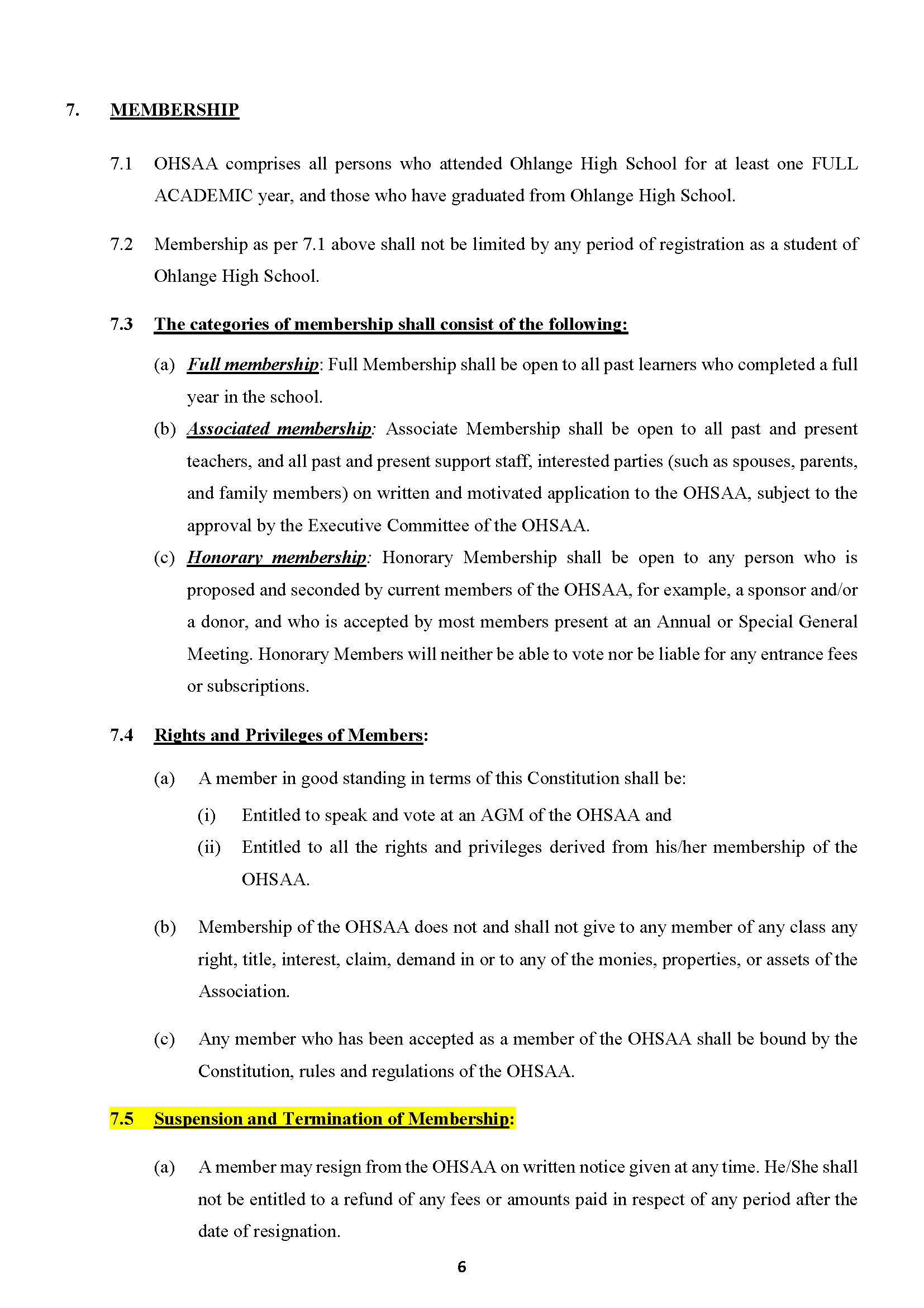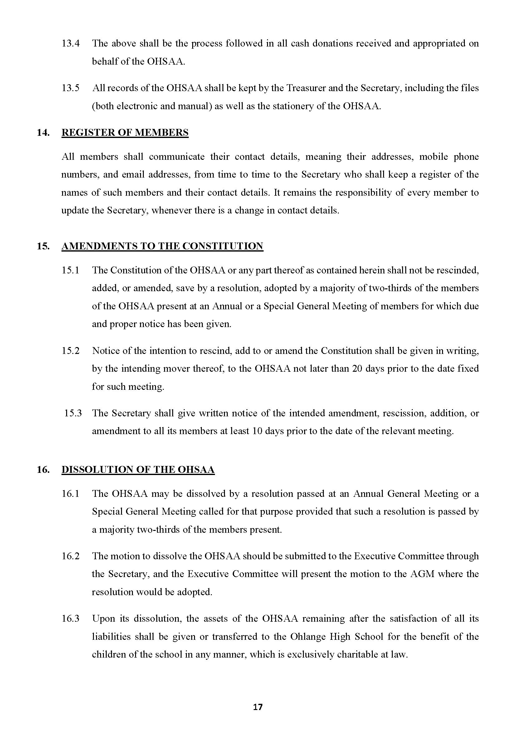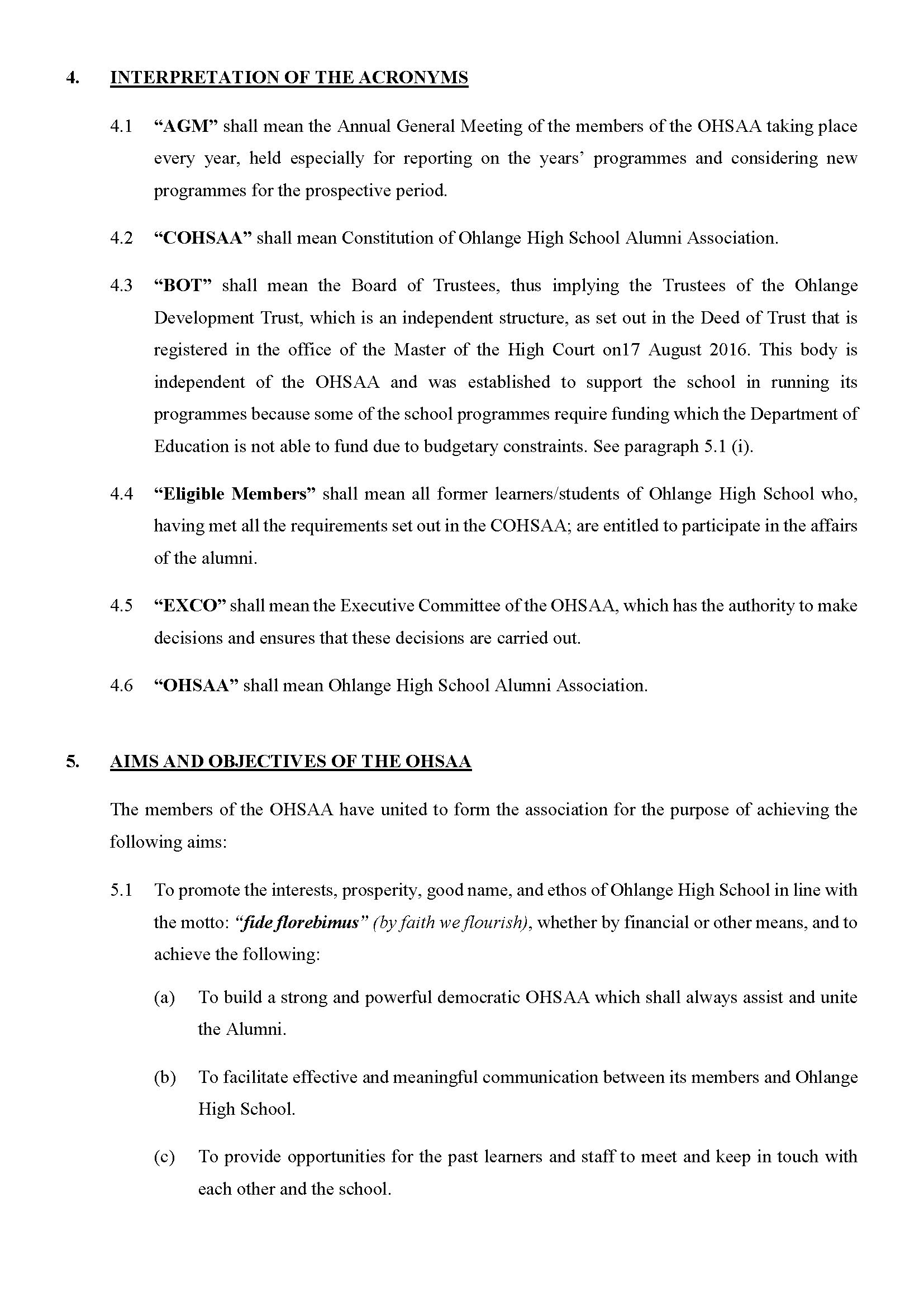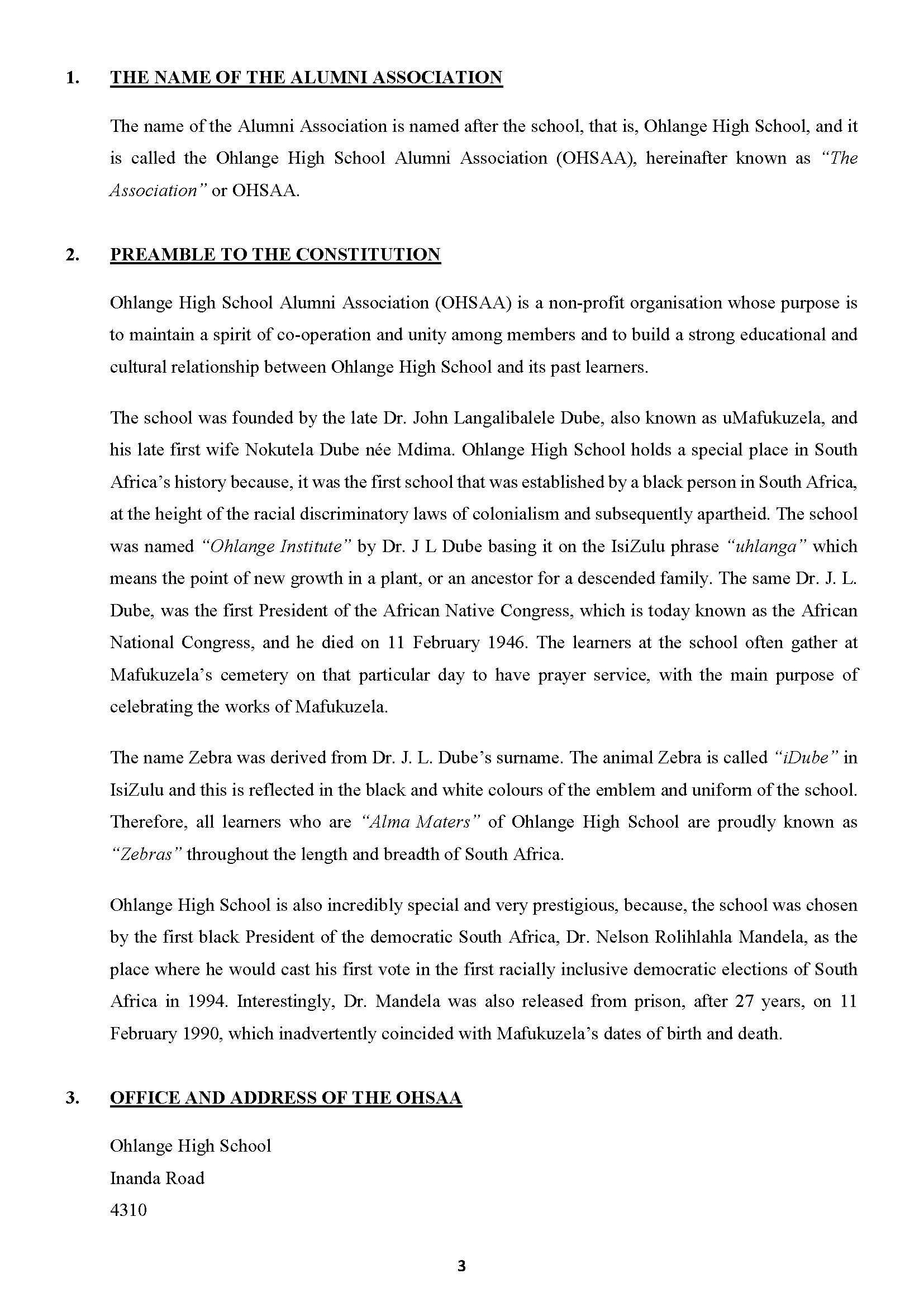 THE CONSTITUTION OF THE OHLANGE HIGH SCHOOL ALUMNI ASSO